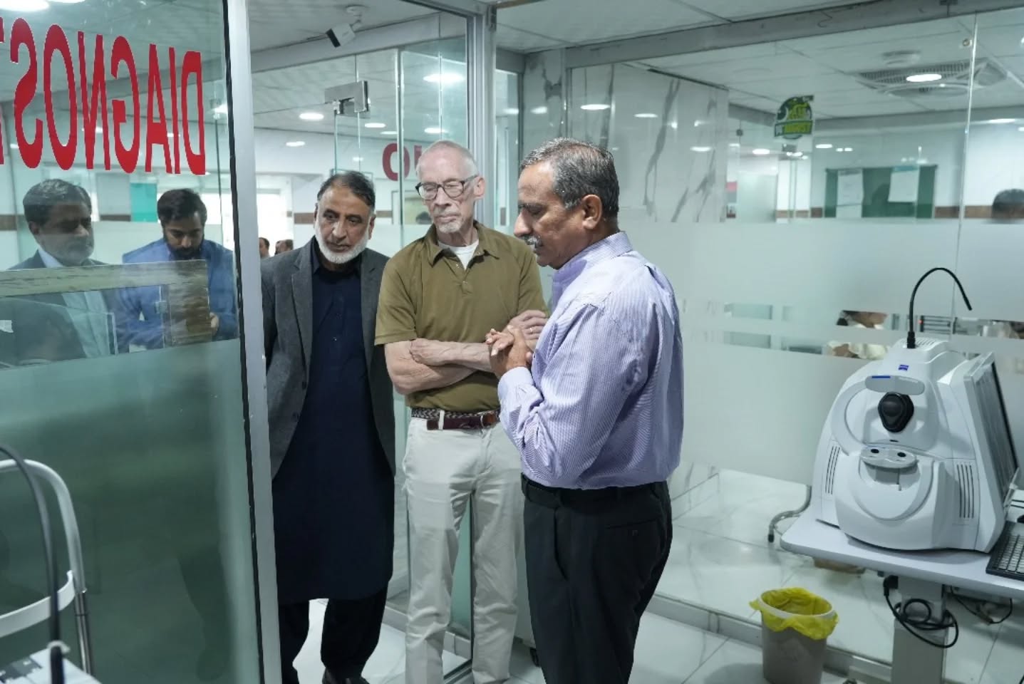 Accompanied by the Country Director of the Zakat Foundation of America, Dr. Fazal ur Rehman, he then toured the Al Mustafa Eye Hospital, observing firsthand the hospital’s efficient and transparent process of providing free, sight-restoring eye surgeries to deserving patients.